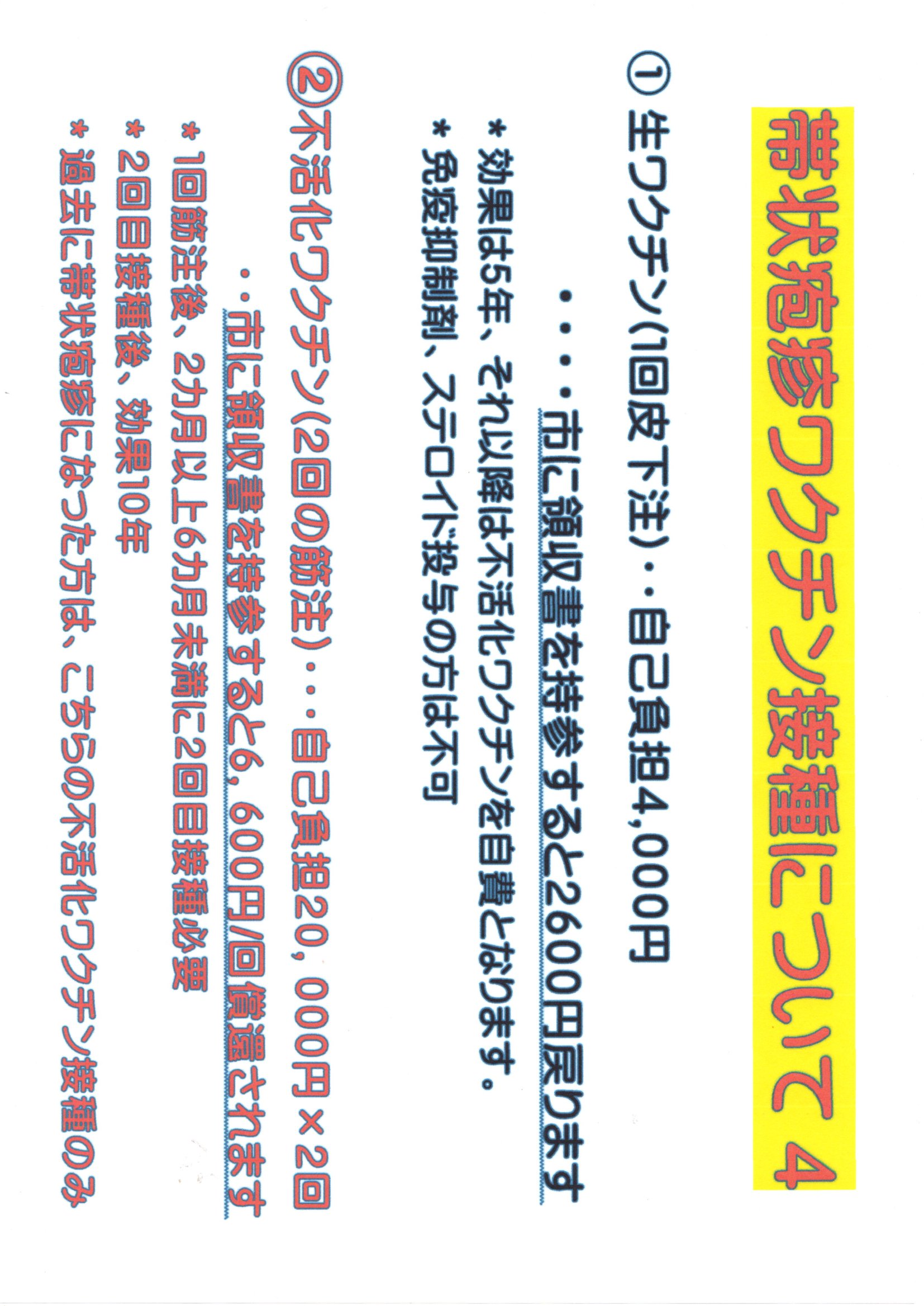 *過去に帯状疱疹罹患された方、既に帯状疱疹ワクチン接種済の方は不可